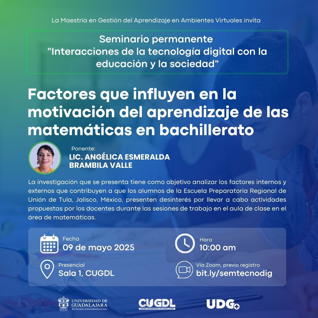 Resumen: La investigación que se presenta tiene como objetivo analizar los factores internos y externos que contribuyen a que los alumnos de la Escuela Preparatoria Regional de Unión de Tula, Jalisco, México, presenten desinterés por llevar a cabo actividades propuestas por los docentes durante las sesiones de trabajo en el aula de clase en el área de matemáticas.El fin ulterior del proyecto es desarrollar estrategias que fomenten el interés y la motivación hacia el aprendizaje de matemáticas en situaciones similares en educación media superior. Se sigue una metodología mixta, con elementos cualitativos y cuantitativos, iniciando con la realización de un sondeo a través de entrevistas para el planteamiento del problema, se ha realizado el diseño y aplicación de instrumentos de recolección de datos y se está en el proceso de la interpretación de los datos recolectados..
